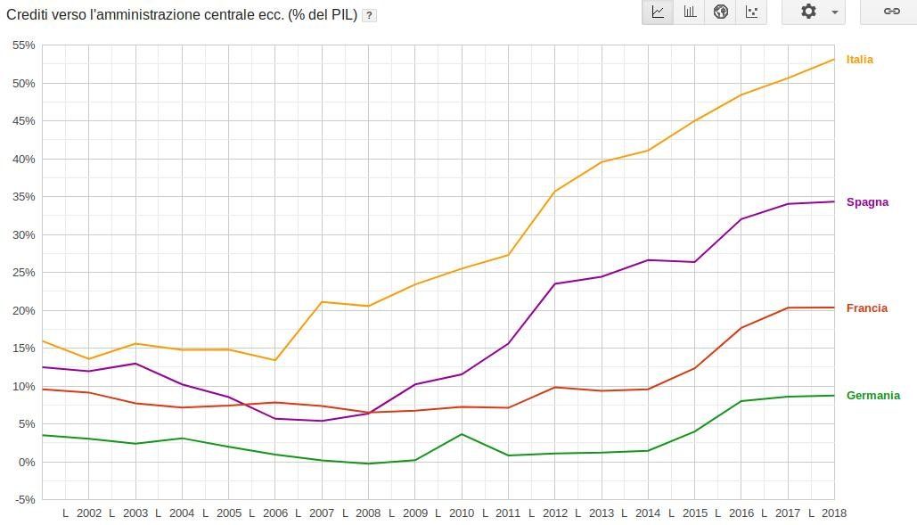 Cambiamo completamente settore: vediamo come si comporta lo Stato Italiano al suo interno. Partiamo con i crediti che i cittadini e le imprese vantano verso lo Stato.